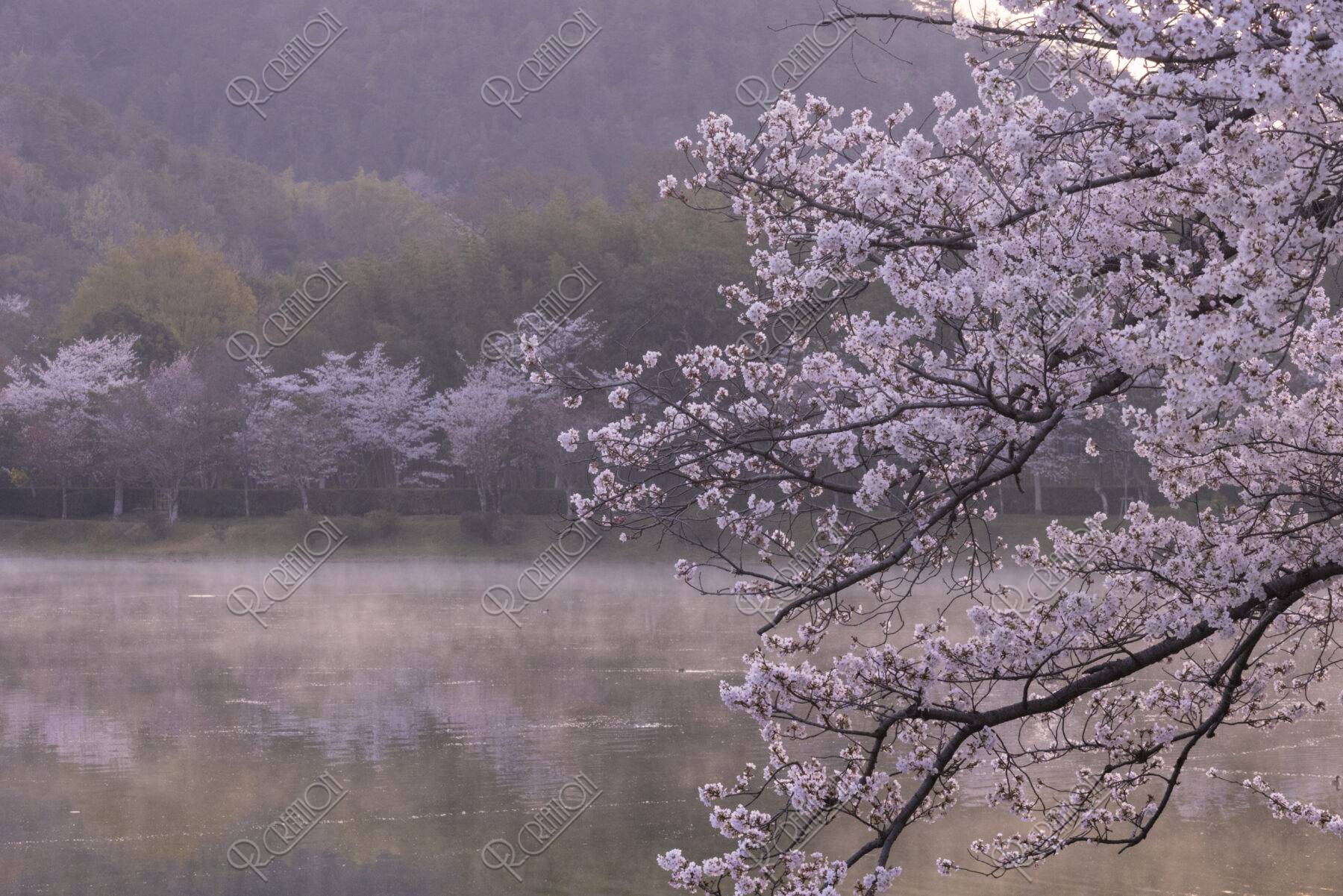 朝靄立つ広沢池と桜XI831